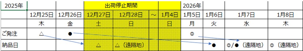 当社の年末・年始の休業と出荷・配送につきまして、下記の通りご案内させていただきます。